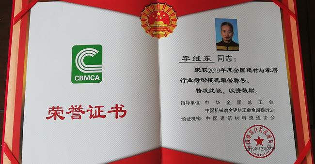松熹電地暖技術(shù)部李繼東、李斌榮獲2019年度全國建材與家居行業(yè)勞動模范榮譽(yù)稱號。